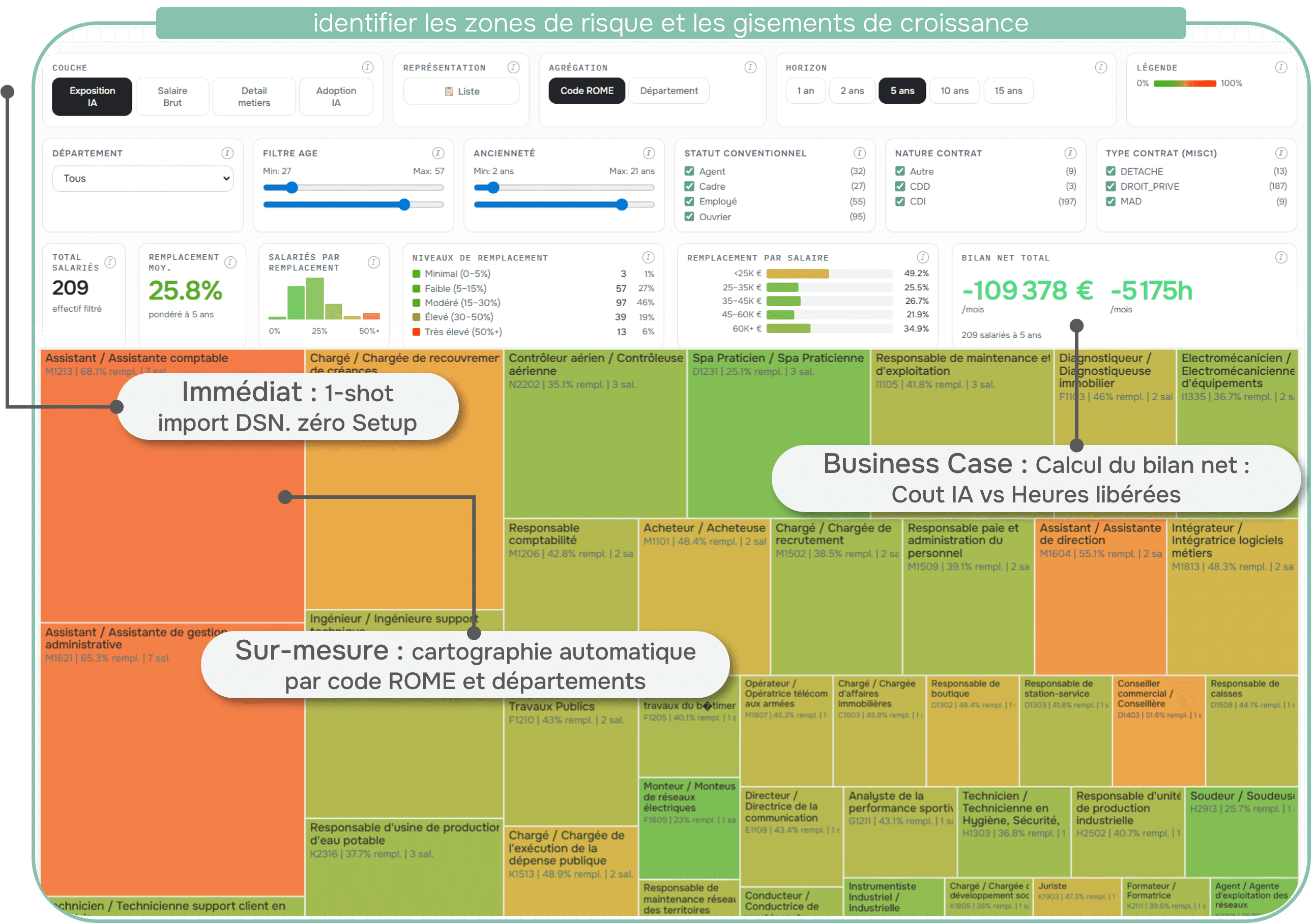 Anticipez l’impact de l’IA pour piloter vos compétences et vos emplois, sans effort de setup : un diagnostic flash vous permettant de mettre en lumière les risques qui pèsent sur votre organisation